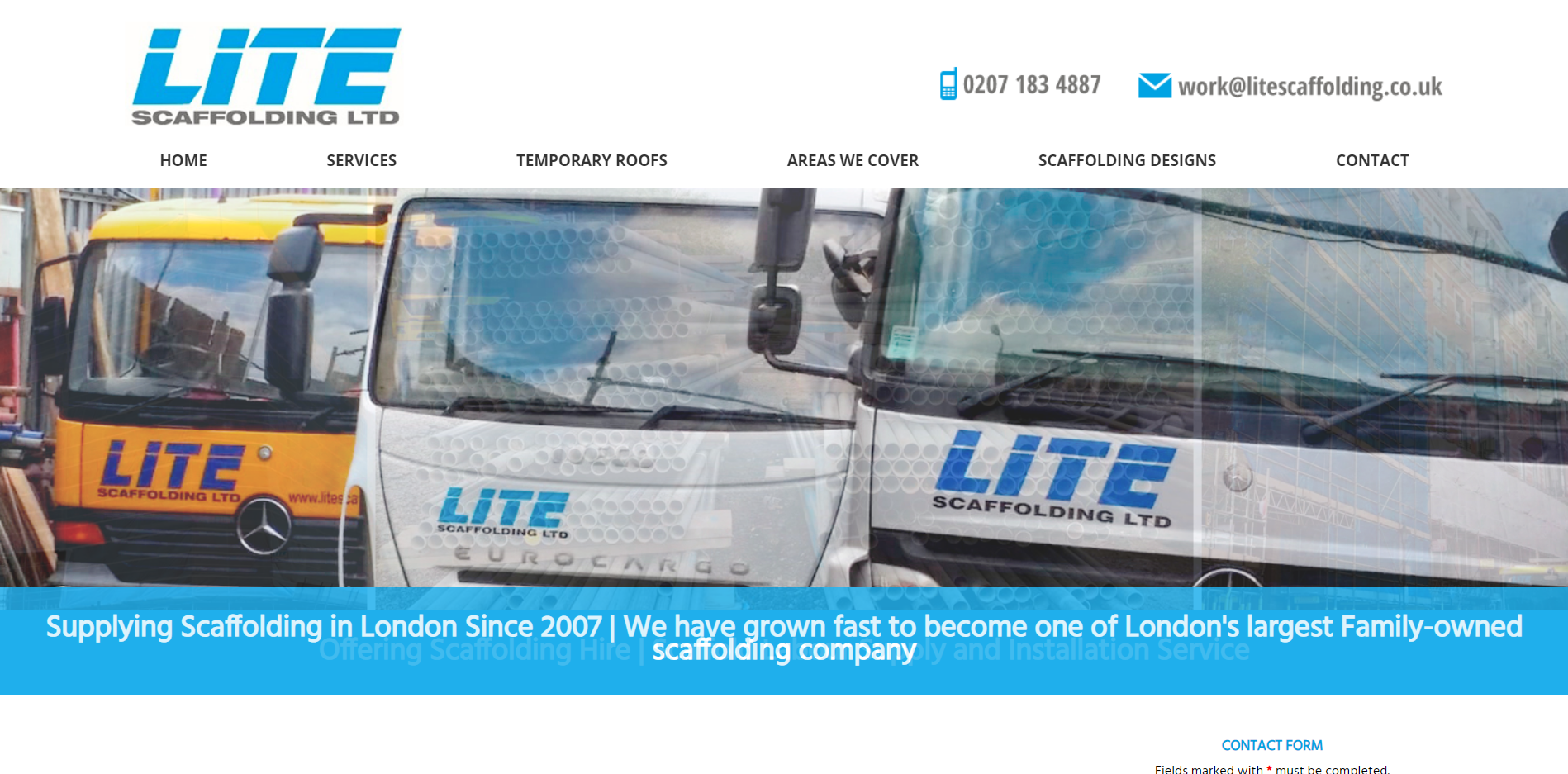 Lite Scaffolding Ltd in London offers residential, commercial and industrial scaffolding services in London. This company also offers temporary roofs. This company covers all over London and provides services widely in UK. This company’s motive is to offer the best scaffolding services for all kinds of requirements by mainly ensuring the work safety of the labours.